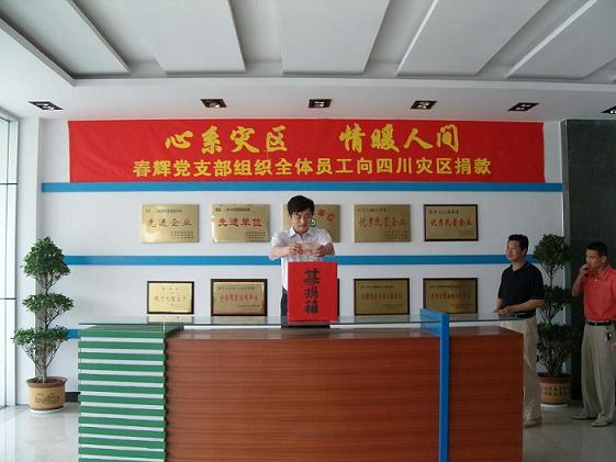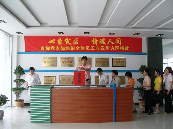 2008年5月12日14時28分,在四川省汶川縣發(fā)生一場里氏8級的特別重大地震災害,造成了人民生命及財產損失等重大災情,災區(qū)、災情牽動著每位春輝人的心,公司高層第一時間向每一位員工發(fā)出震災捐助倡議書,得到大家的積極響應。