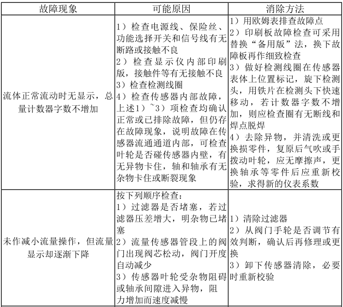 傳感器長期使用因軸承磨損等原因,儀表系數(shù)會發(fā)生變化,應(yīng)定期進行離線或在 線校驗。若流量超出允許范圍,應(yīng)更換傳感器。
