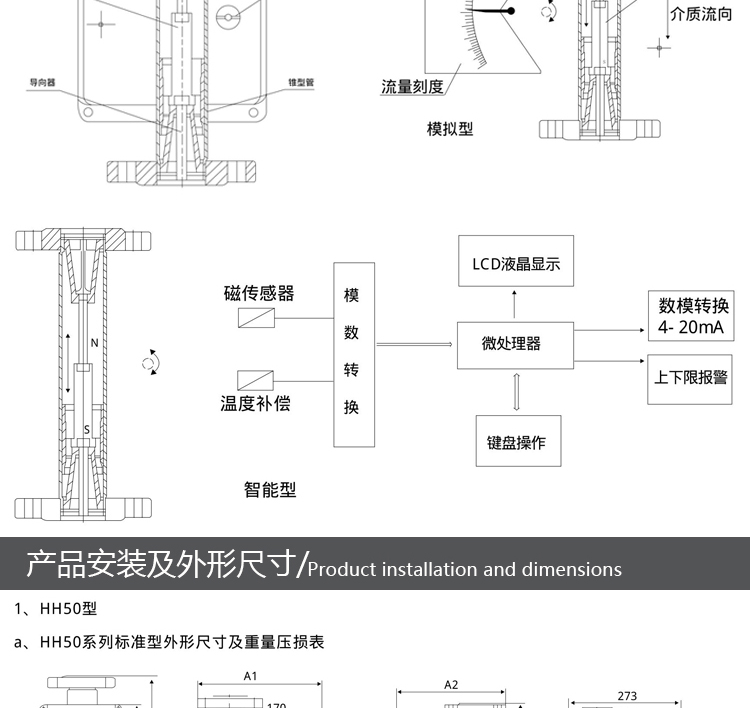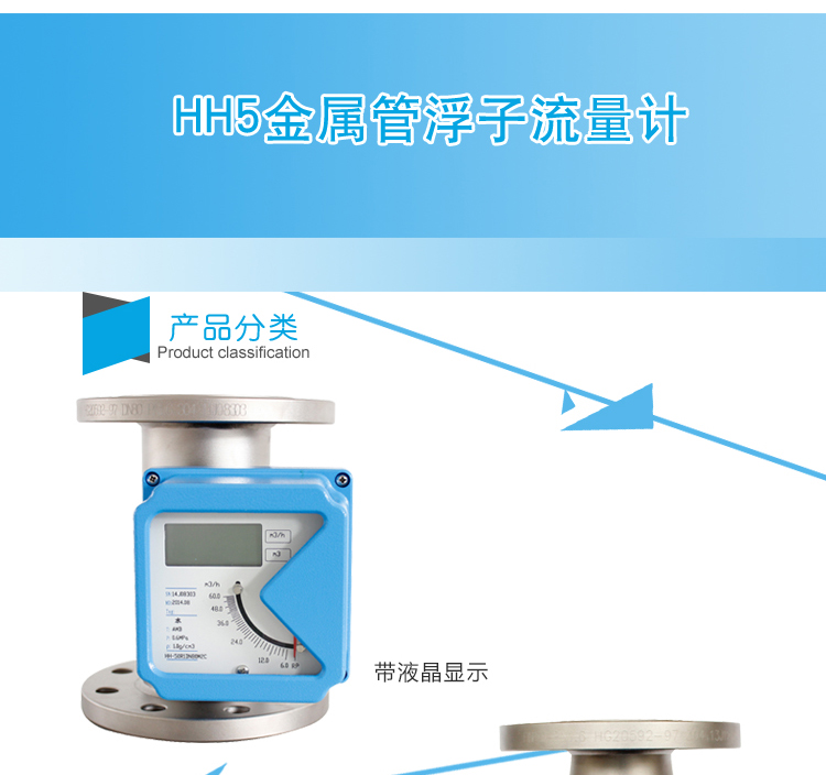 HH5系類金屬管浮子流量計(jì)是工業(yè)自動(dòng)化過(guò)程控制中常用的一種面積流量測(cè)量?jī)x表。它具有體積小,檢測(cè)范圍大,使用方便等特點(diǎn)。它可用來(lái)測(cè)量液體、氣體以及蒸汽的流量,特別適宜低流速小流量的介質(zhì)流量測(cè)量。 流量計(jì)主要有三大部分組成:1.測(cè)量管體;2.錐形浮子;